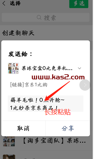 3、选择“微信”或”朋友圈”或“QQ”,然后在空白处点粘贴,发送